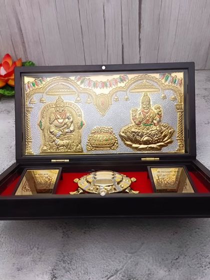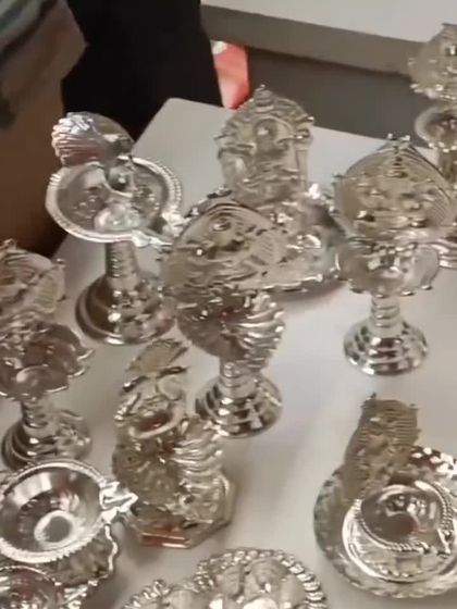 Sab products mein German Silver ka classic shine, antique finish, ya pure silver frames milenge. Har piece ekdum shandaar finishing ke saath aata hai. Bulk gifts chahiye toh bhi, Kumkum boxes, Kamakshi diyas, incense stands, cow-calf figurines... sab available hain. Bade events ke liye, curated gift boxes aur deity idols bhi mil jayenge.