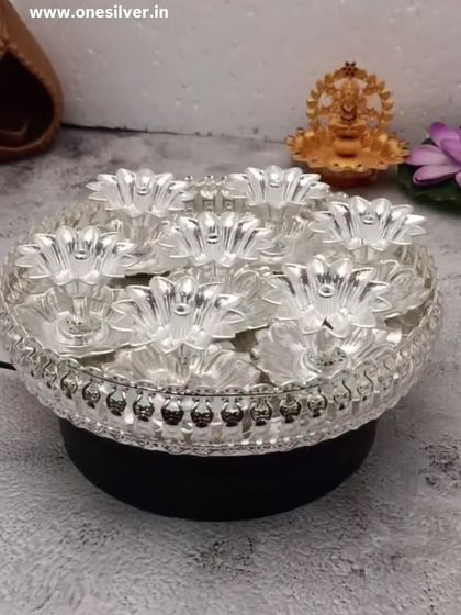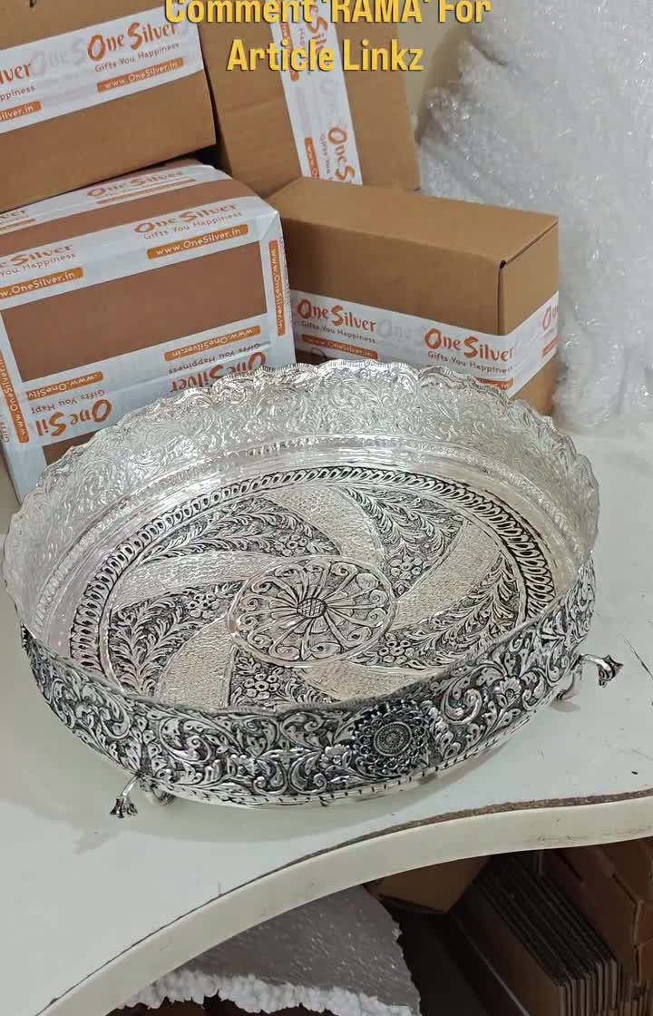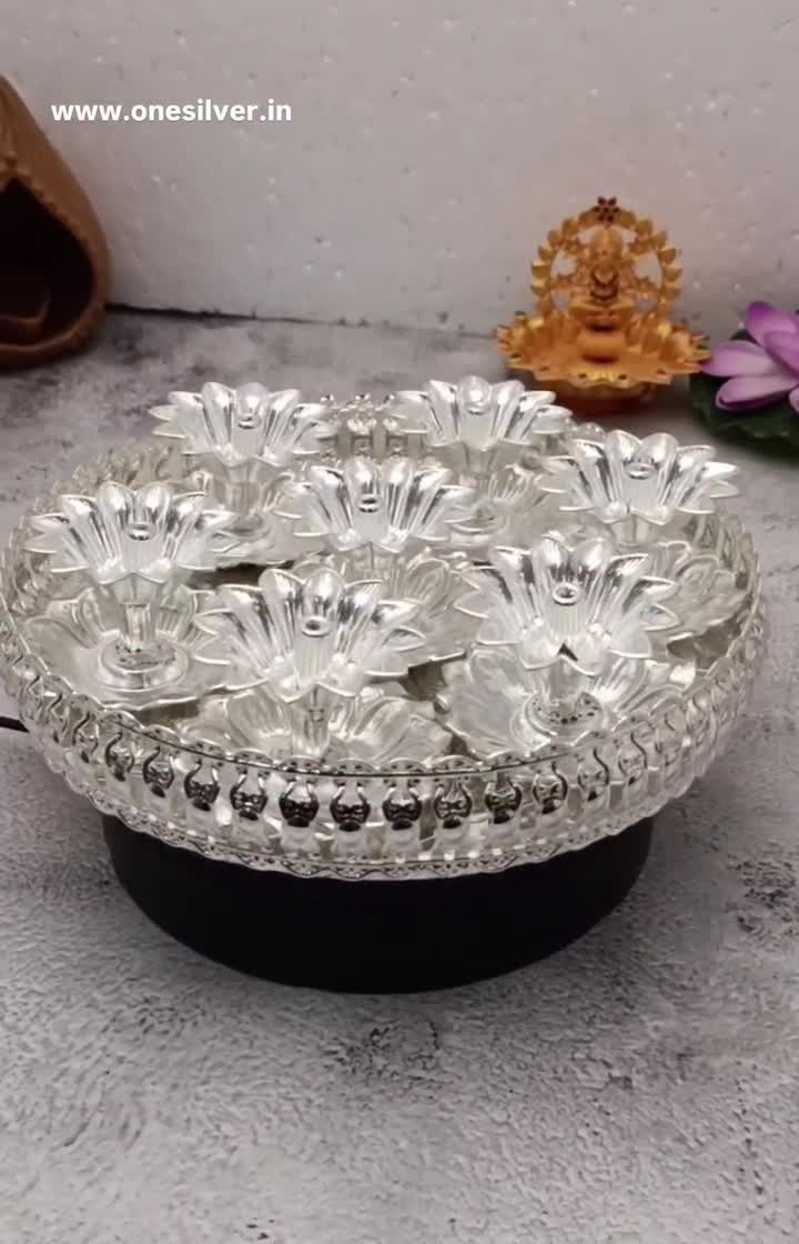 Enhance your home decor or serve guests in style with our collection of German silver and brass trays, bowls, and urlis. Each piece features detailed craftsmanship, with options ranging from simple, elegant designs to antique-finish statement pieces.