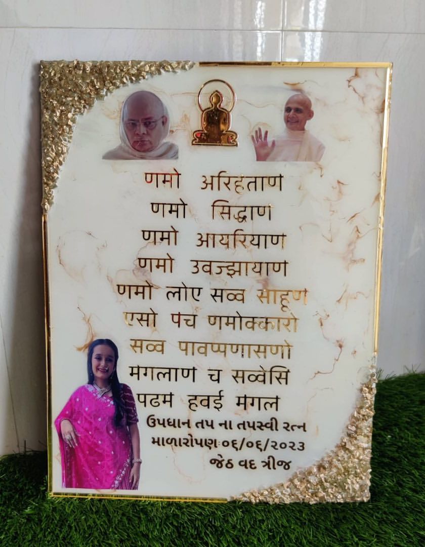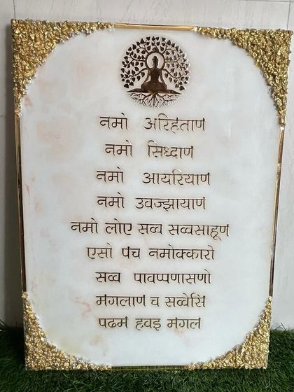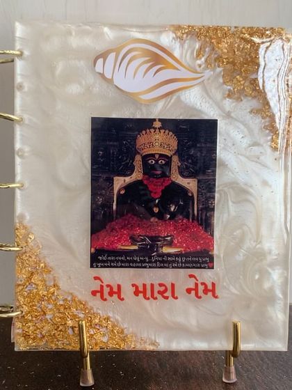 I create meaningful resin art pieces for your sacred spaces. This collection includes custom Navkar Mantra frames, Gayatri Mantra plaques, and personalized frames for religious milestones. Each piece is designed to bring a sense of peace and devotion to your home.