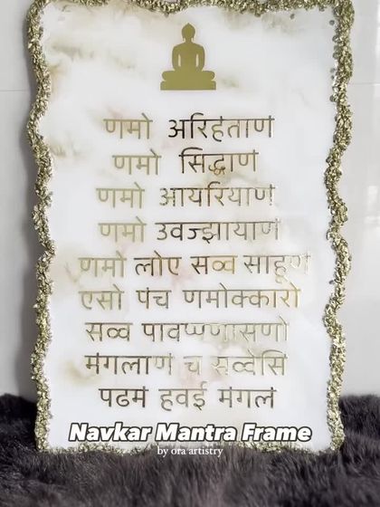 We create custom resin art frames featuring the sacred Navkar Mantra, combining spirituality with artistic expression. Each frame is handcrafted with ornate resin borders and elegant gold lettering.