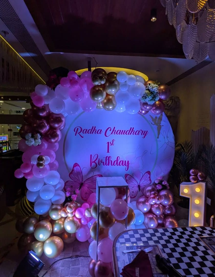 The first birthday is a big deal! I design everything from colorful character themes to elegant butterfly or sunshine themes. I can include large light-up numbers, custom backdrops, and full venue decoration.