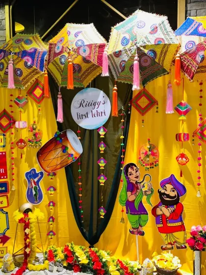 - Family moments like baby’s First Lohri get colourful, custom backdrops with kites, dhols, and bonfire graphics - thoda hatke (something different) from the usual.