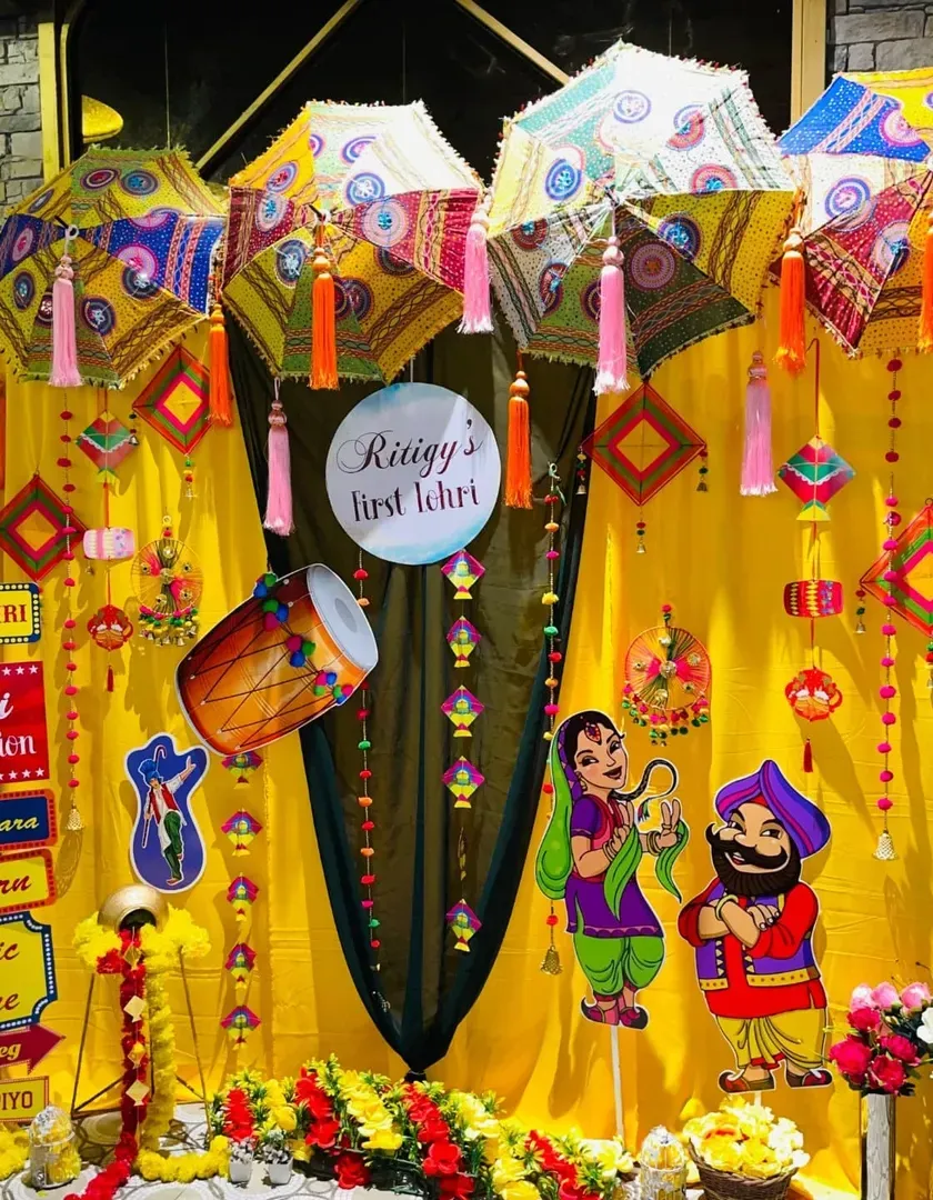 A baby's first Lohri is a huge milestone, and I love making it extra special. I design vibrant, personalized backdrops that capture the essence of Punjab with elements like phulkari umbrellas, dhol cutouts, and kites, creating the perfect setting for family photos and memories.