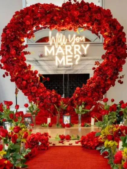 - Marriage proposals: Think rose petal pathway and a proposal balloon arch, maybe a neon "Marry Me" sign if you want full drama.
