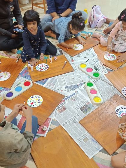 What We Offer - We run interactive storytelling for kids, plus hands-on crafts, painting, and mud play activities.