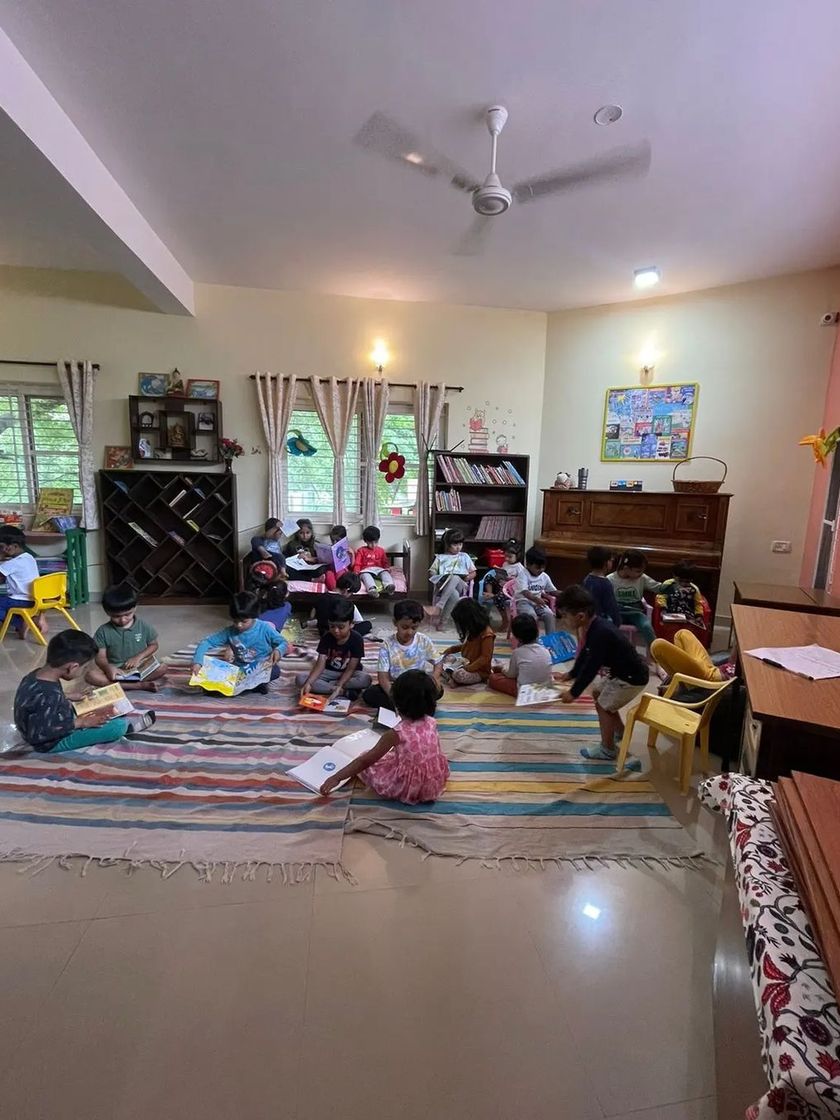 Our library is more than just a place for events; it's a welcoming reading lounge for children. We’ve designed the space with comfy bean bags, low shelves, and colorful mats to encourage kids to pick up a book and explore at their own pace. It’s a quiet, safe haven where a lifelong love for reading begins.