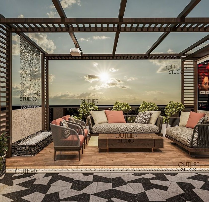 We extend luxury living to the outdoors, designing party terraces, serene balconies, and poolside lounges that serve as your private retreat. Our designs incorporate elements like pergolas, water features, modern bars, and lush greenery to create the perfect setting for relaxation and entertainment.