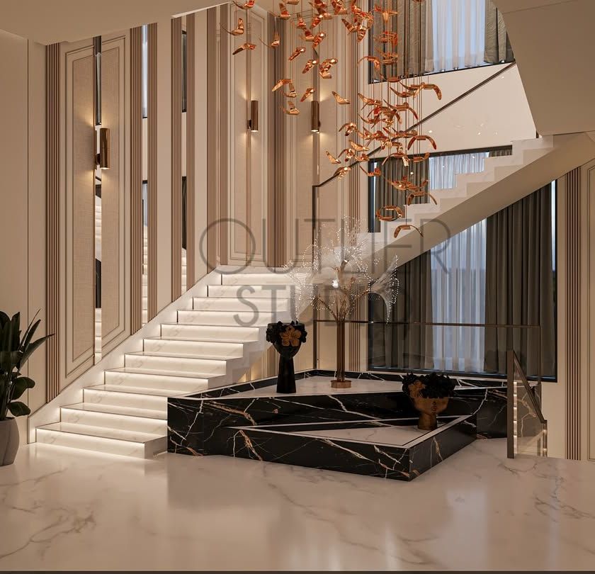 I transform transitional areas into captivating experiences. My staircase and lobby designs act as artistic focal points, using sculptural forms, premium materials like marble and metal, and dramatic lighting to set a tone of elegance from the moment you step inside.
