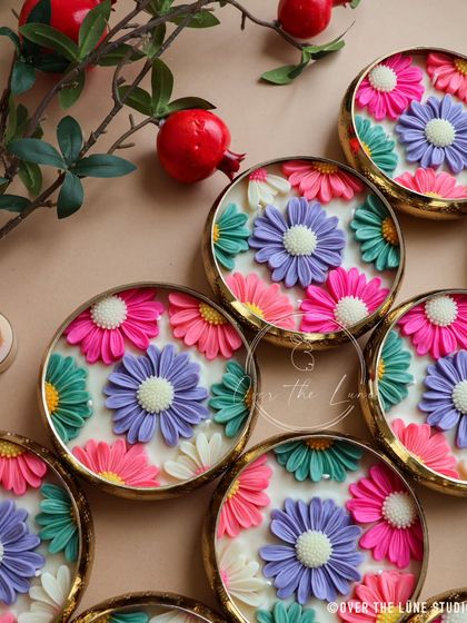I specialize in creating memorable, handmade favors for your most important celebrations. From vibrant Urli candles for a Mehendi function to elegant jar candles for a bridal shower, every piece is customized to match your event's theme and color palette.