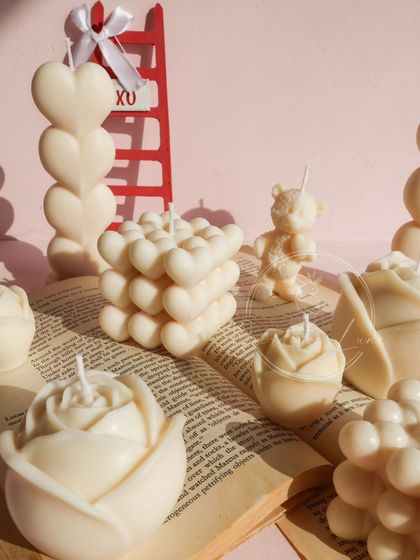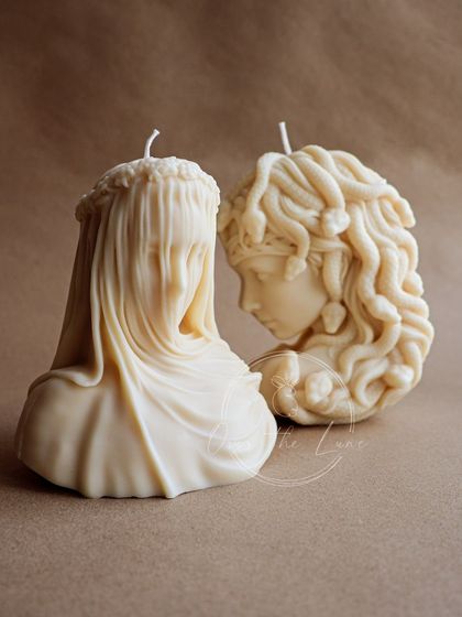 We make handmade sculptural candles from vegan wax blends that work as decor pieces or unique gifts, with designs ranging from Greek busts to floral and festive shapes.