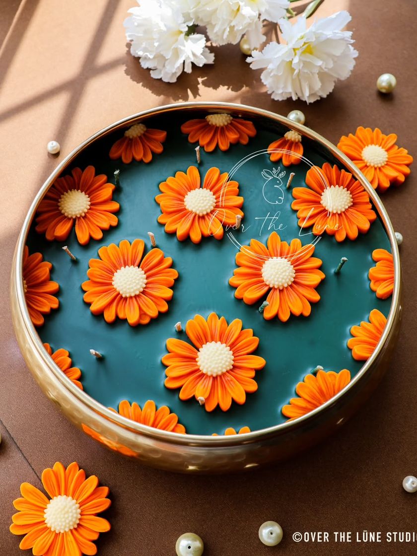 These are perfect for creating a stunning centerpiece for festivals and celebrations. I handcraft each floral element, from vibrant daisies to cheerful sunflowers and elegant camellias, and set them in beautiful brass urlis or design them to float on water.
