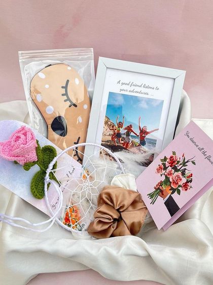 We create customized gift hampers that combine our signature crochet flowers with personalized photo frames, greeting cards, and beauty products. Each hamper is thoughtfully curated based on the occasion and recipient's preferences.