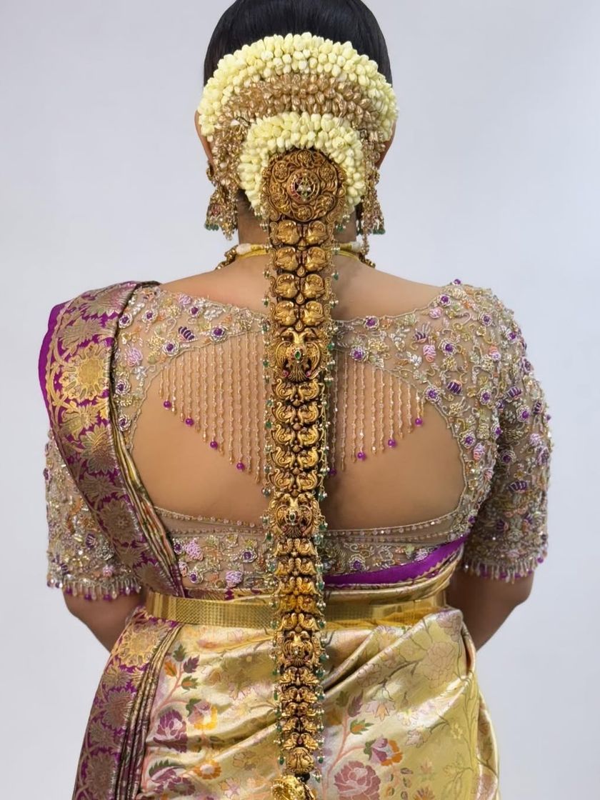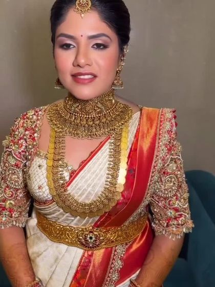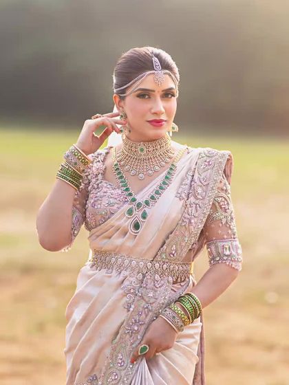 For the bride who wants a perfectly cohesive look, I design complete ensembles. This includes the signature blouse, a custom-designed saree border, and a delicate hand-worked veil. Every element is thoughtfully planned to create a harmonious and unforgettable bridal outfit.