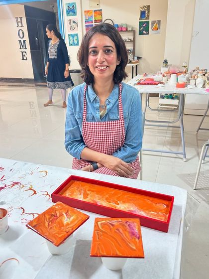 Workshops & Parties - We run resin art workshops, custom candle making, tie-dye, pottery, Lippan art, and more. Plus, kids art birthday parties and team events.
