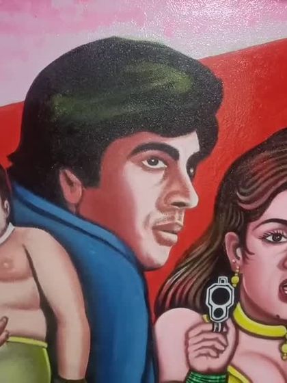 I bring the drama and color of old-school Indian cinema to life with hand-painted posters, banners, and life-sized cut-outs. This style is perfect for themed decor in homes, cafes, or for special events.