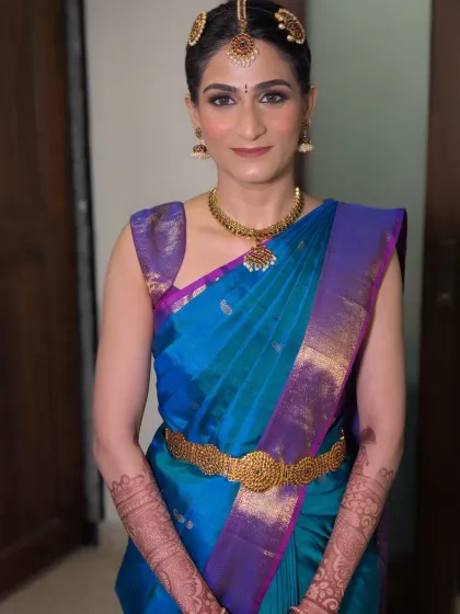 I do bridal makeup, hair styling, saree draping, and jewellery setting for all wedding events, with custom looks for every skin tone and culture, plus a trial so you know exactly how you'll look.