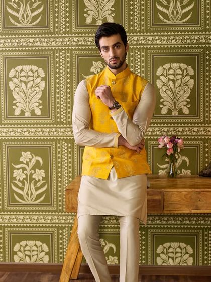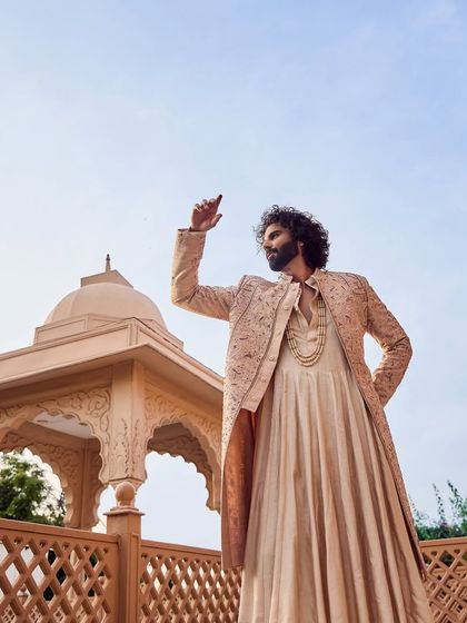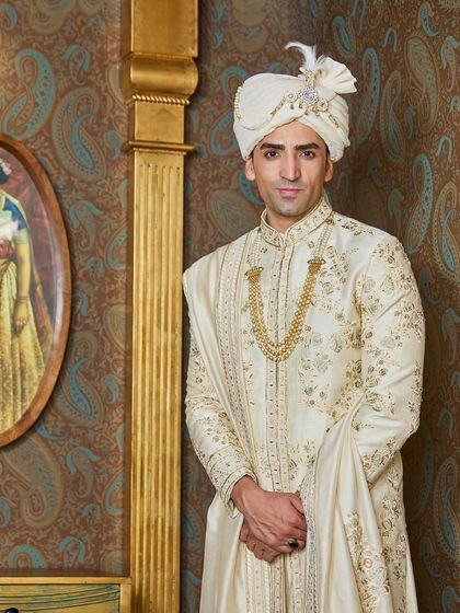 We make custom-fit Indian wedding and festive outfits for grooms and guests, using premium fabrics and hand-embroidery, tailored for each event.