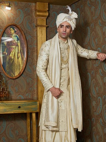 The sherwani is the pinnacle of wedding day attire, and it's my signature offering. I specialize in creating regal, handcrafted pieces that blend heritage with a modern sensibility, using everything from intricate Turco-Persian embroidery to clean, contemporary cuts in a palette of ivory, gold, and fresh pastels.