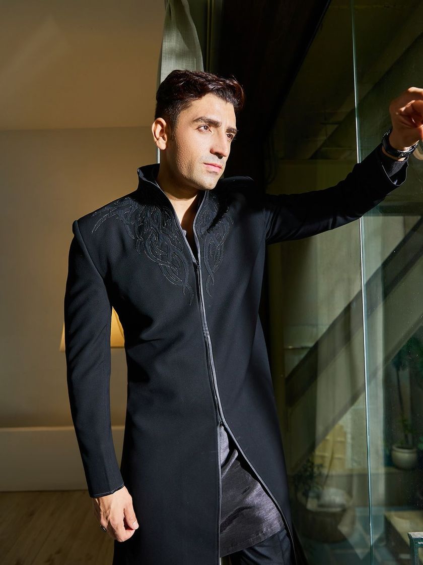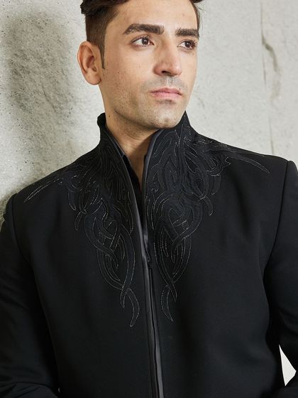 For the man who walks the line between tradition and trend, my Indo-Western collection offers the best of both worlds. I combine classic Indian silhouettes with modern elements like asymmetrical cuts, zippers, and innovative embroidery to create outfits that are perfect for a Sangeet, cocktail party, or any festive occasion.