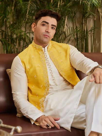 My kurta and jacket sets are the perfect solution for festive occasions like a Haldi, Mehendi, or a family puja. I design them to be effortlessly stylish and comfortable, using breathable fabrics and a range of colors from bright yellows to cool pastels, all finished with my signature handcrafted details.