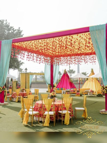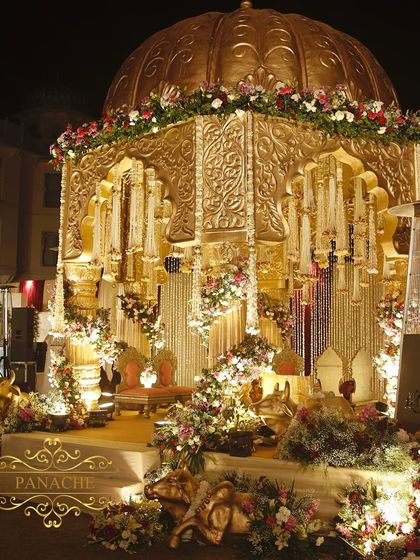 Hey, we’re Panache, and honestly, shaadi ka maza (the fun of weddings) is in the little things. Big, bold celebrations, yes, but it’s the fragrance of Rajnigandha tassels, the sparkle from chandeliers, and that feeling when couples see their dream space come alive – that’s what drives us. Been lucky to work with luxury hotels, but our real win is making memories that last forever. For us, decor is more than pretty – it’s your story, told in colors and light.