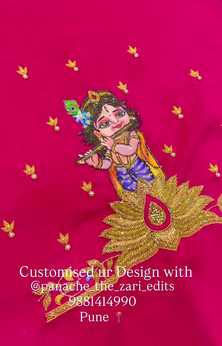 Celebrating the journey to motherhood is a precious occasion. I design beautiful, comfortable, and meaningful outfits for baby showers, like this custom blouse featuring the divine love of Radha and Krishna to bless the mother-to-be.