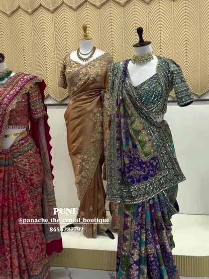 Beyond bridal wear, I offer a curated collection of beautiful sarees perfect for wedding guests and festive celebrations. This selection includes a variety of fabrics, colors, and embroidery styles, available for rent.