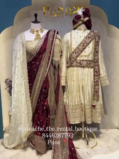 Grooms, you’re sorted. Sherwanis, Jodhpuris, Indo-Western, tuxedos - all available. Groom sherwani rental is easy, and I even have combos to match the bride’s Navwari saree.