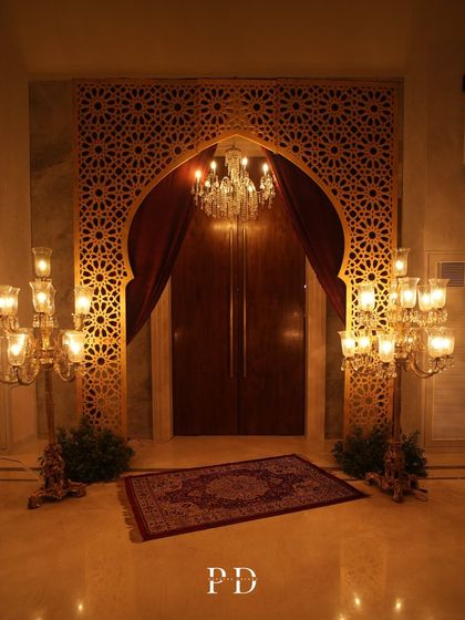 Every function gets its own signature style. Whether you want a lakeside mandap with brass lamps and lotus flowers, a Sheesh Mahal-inspired ceremony full of royal vibes, or just a minimal mountain wedding design, I’ve got you covered. I love creating poetic pathways - sunflower arches, crystal chandeliers, whatever makes your entrance unforgettable.