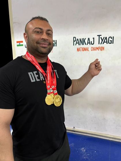 Ram Ram bhaiyon. Main Pankaj Tyagi. Powerlifting mera junoon hai, pagalpan bhi hai. Zindagi main ab maza lene wapas aaya hu, maa baap ke ashirwad se. 'Jai Shree Ram' bolke weight uthata hu, darr nahi lagta. Vegetarian powerlifter hu, dabna nahi aata. Main jaisa hu, waisa hi milunga. Baaki sab mil jaate hain, maa baap ek hi milte hain. Jai Baba ki.