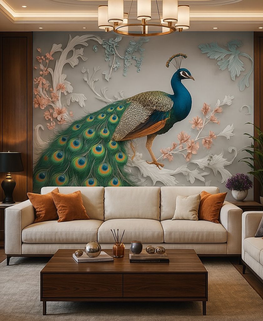 We celebrate culture and spirituality with our collection of traditional and divine art wallpapers. This includes custom murals of deities like Radha Krishna and Buddha, historical figures like Shivaji Maharaj, and elegant motifs like peacocks and royal Indian architecture.