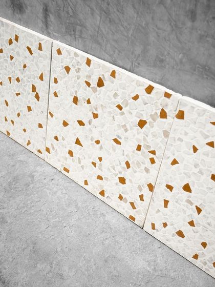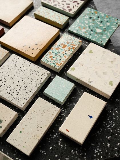 I make custom terrazzo and concrete surfaces like tiles, wall panels, countertops, and sinks, all handmade to your size, color, and finish choices.