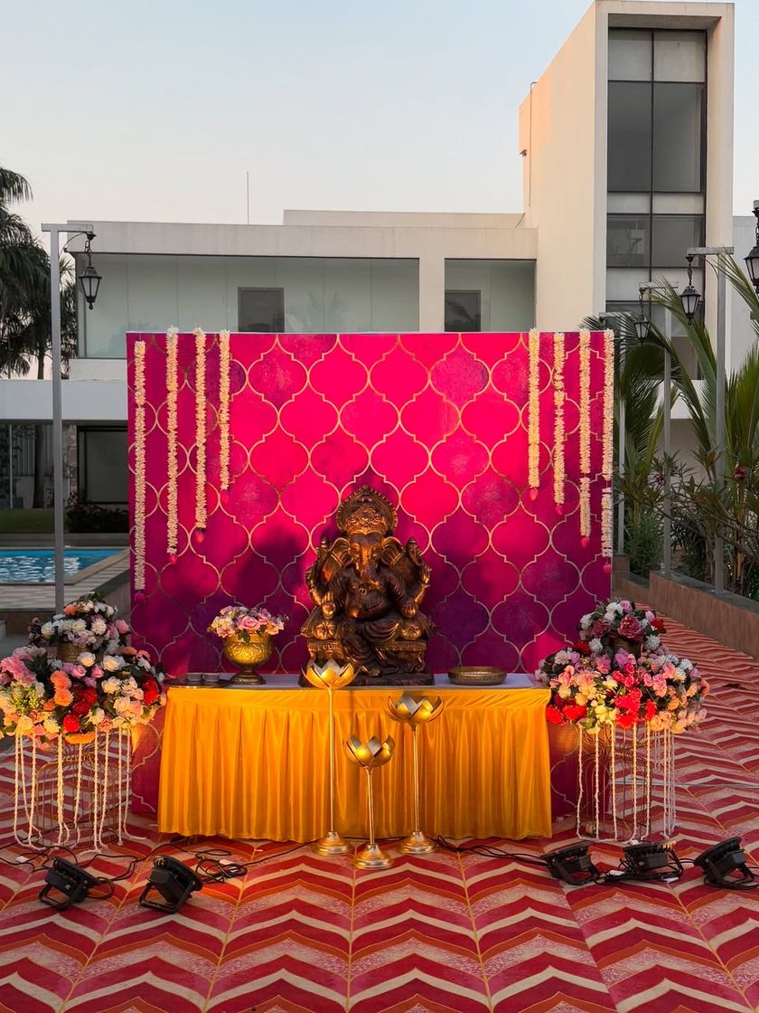 This is the first look into my work, showcasing a blend of traditional artistry and modern design for your most cherished festivals. I've selected these visuals to highlight the variety and quality you can expect, from vibrant Haldi ceremonies and grand Ganpati setups to the fine details that make each celebration unique.