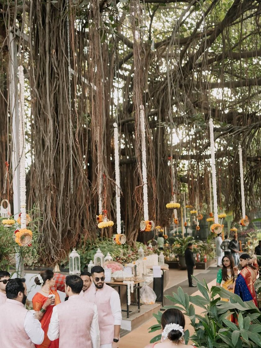I love incorporating natural elements to create an earthy and organic ambiance for any festival. This collection showcases my work using banyan tree roots as a natural canopy, accented with hanging floral arrangements, traditional brassware, and soft lighting.