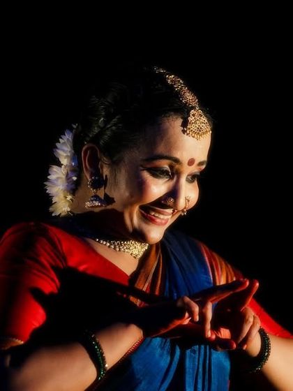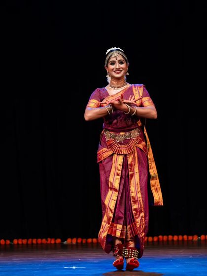 I present solo and ensemble Bharatanatyam performances that blend traditional techniques with contemporary themes. My productions include acclaimed works like "ĀBHA," "Punyah Krishna," and "Hara," which showcase intense physicality and deep devotion.