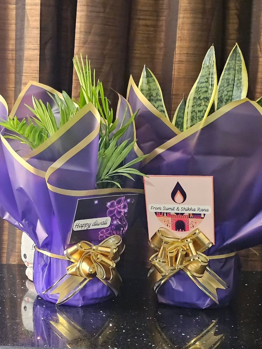 I can create the perfect plant gift for any event, from birthdays and anniversaries to corporate gifting and Diwali. I also handle bulk orders for return favors, like small succulents, which are perfect for weddings and parties.