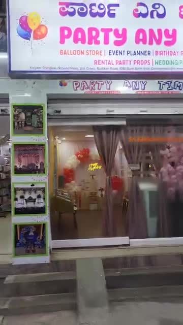 You can rent individual items from me to enhance your party, like light-up marquee letters, neon signs, themed plinths, and backdrops. You can see all these items and more at my party supply shop (angadi) in Kanakapura.