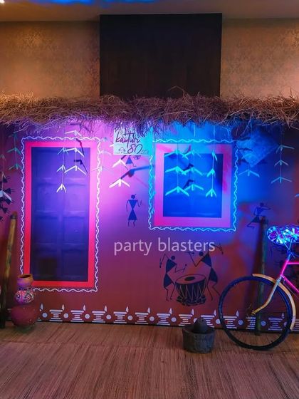 - For company parties, we go full-on with custom stages, bold 3D graphics, and themes that fit your crowd - from Dandiya night to full Indian village style, we don’t shy away from colors or quirk.