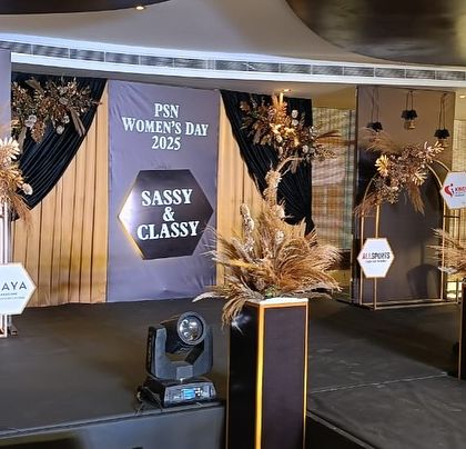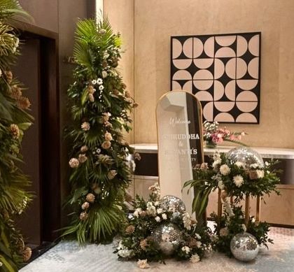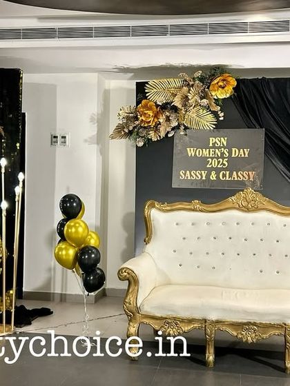 - For company award functions, I’ve built custom backdrops, themed photo booths, and styled floral setups. Like for Women’s Day, I went all out with black and gold layers, boho pampas grass, and a gold sequin wall that was a hit for selfies.
