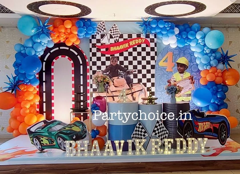 We create high-energy parties for kids who love action and speed. Our portfolio includes themes like Hot Wheels and car racing, football, and superheroes, complete with dynamic backdrops, custom props like road signs and race tracks, and exciting color schemes.