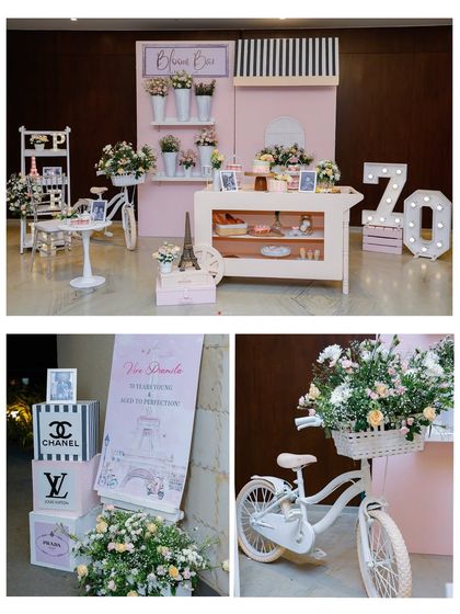 - “Parisian Luxury” 70th birthdays: pastel florals, mini Eiffel Tower, Chanel vibes, even a dessert cart like in a real Paris bakery