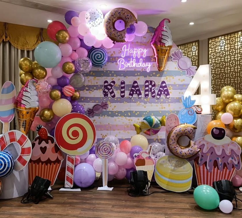 We specialize in creating magical worlds for your child's birthday. From popular themes like Jungle Safari, Candyland, and Dinosaurs to custom requests, we design everything from the backdrop and balloon art to props and lighting.