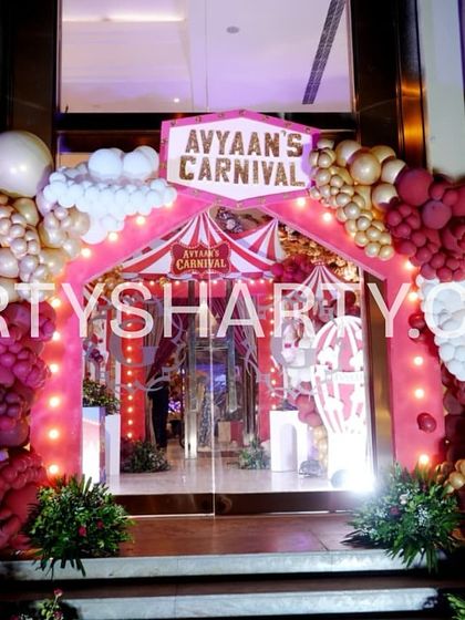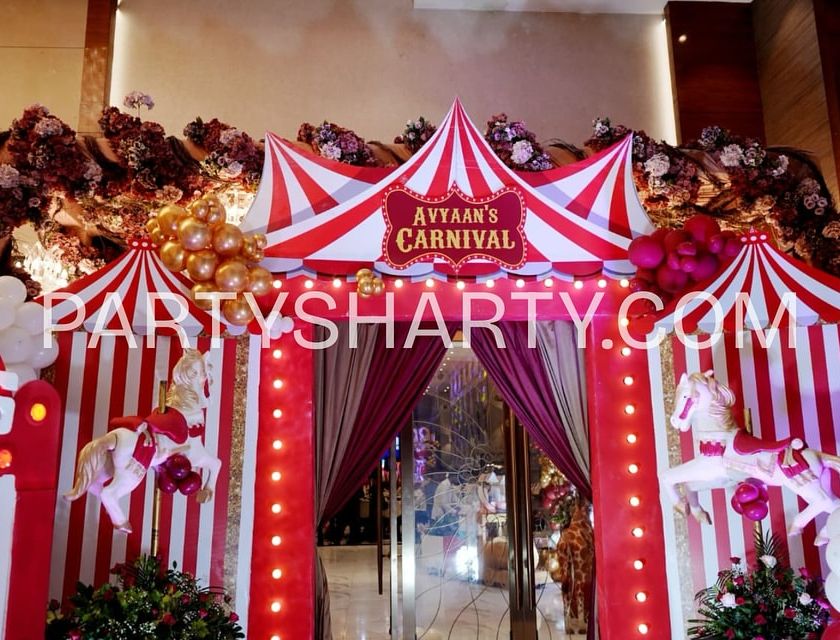 Step right up to the greatest party on Earth. We recreate the vibrant and playful atmosphere of a carnival with classic elements like red and white striped tents, carousel horses, Ferris wheel props, and fun character cutouts, ensuring a day of fun and games for everyone.