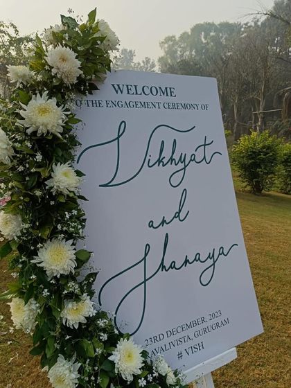 - Personalized welcome signs and custom wedding signage with your names or hashtag