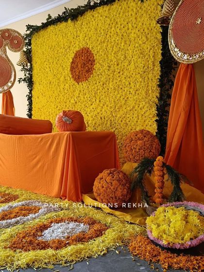 - Marigold haldi decor or even a sunflower theme for yellow, happy vibes