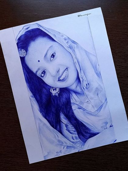 I create detailed portrait sketches using ballpoint pens, specializing in blue ink artwork. Each commission is personalized to capture intricate details from photographs - including facial features, textures, and traditional elements.