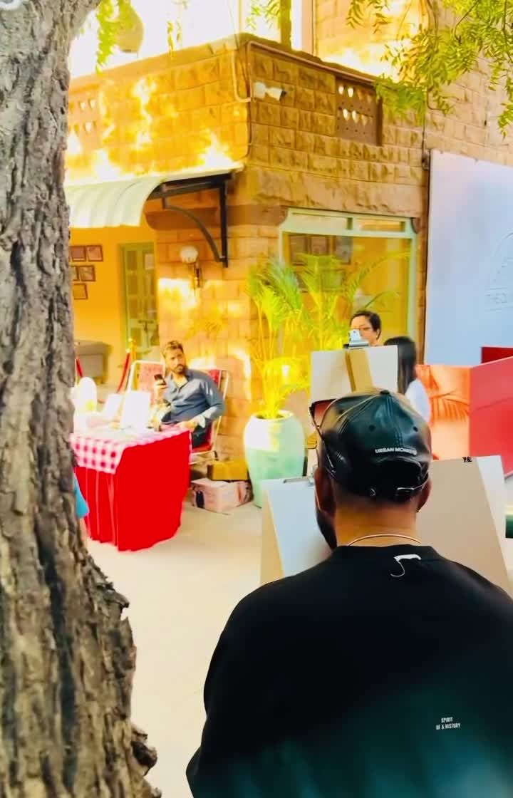 My setup is simple and flexible, allowing me to create art just about anywhere. Whether it's a formal event with an easel or a casual outdoor gathering, I can mingle with guests and capture moments as they happen.