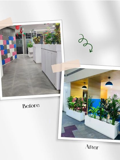 We design and set up plant-filled interiors for offices, cafes, and commercial spaces by combining horticulture with interior design, handling everything from planning to final setup.
