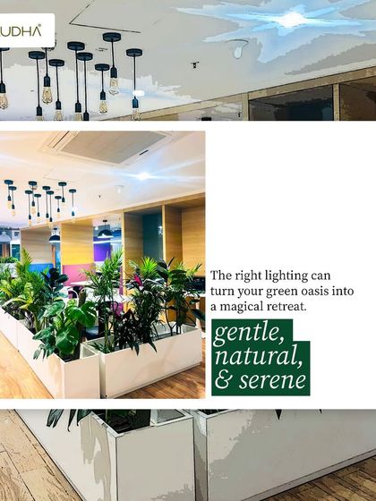 I mix horticulture and interiors, so you get leafy vertical gardens, custom planters for commercial interiors, and cozy breakout zones. Lighting matters too - I use warm glows and gentle highlights for that sukun ke lamhe (moments of peace).