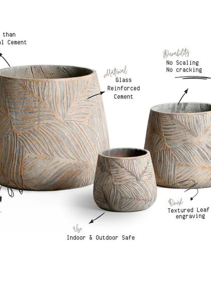 My planters are more than just pots; they are designed to be pieces of art. This collection features my signature Glass Reinforced Cement (GRC) planters, which have the look of real stone but are lightweight, durable, and won't crack or scale.